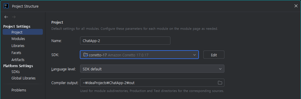 - File → Project Structure → Project SDK: Amazon Corretto 17