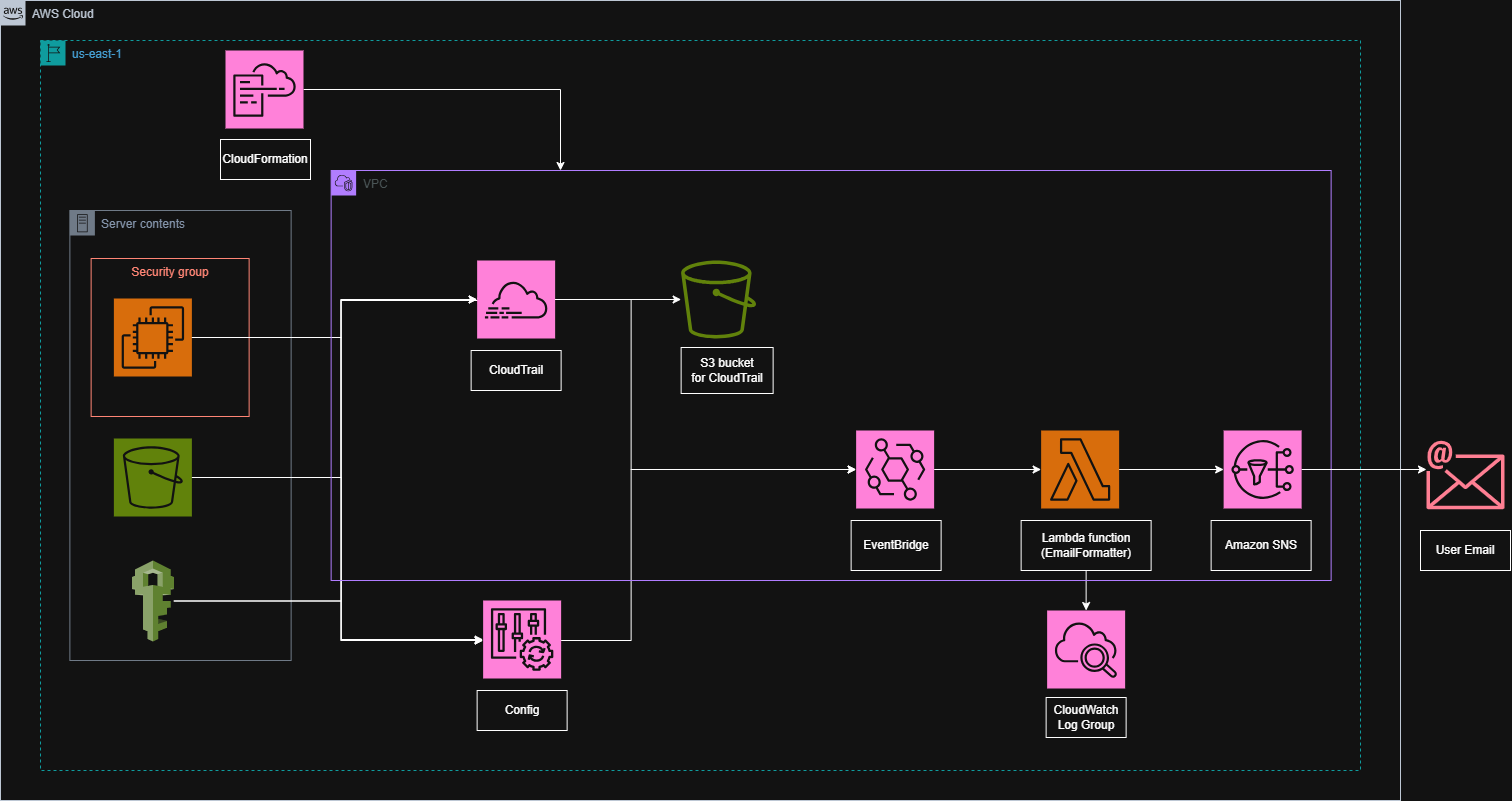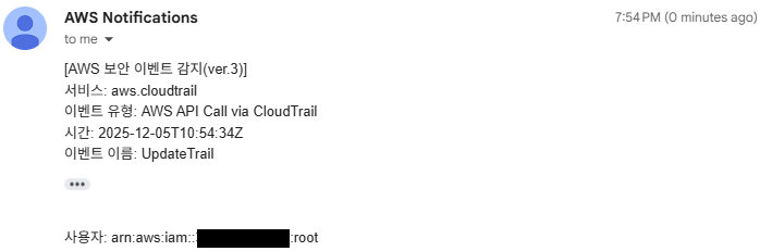 특히 IAM 계정 생성, 보안 그룹 변경, CloudTrail 비활성화, Config Rule 위반 같은 이벤트는 즉시 대응하지 못하면 차후 보안 사고로 이어질 가능성이 높기 때문에 자동화된 보안 알림 파이프라인이 필수적이다.