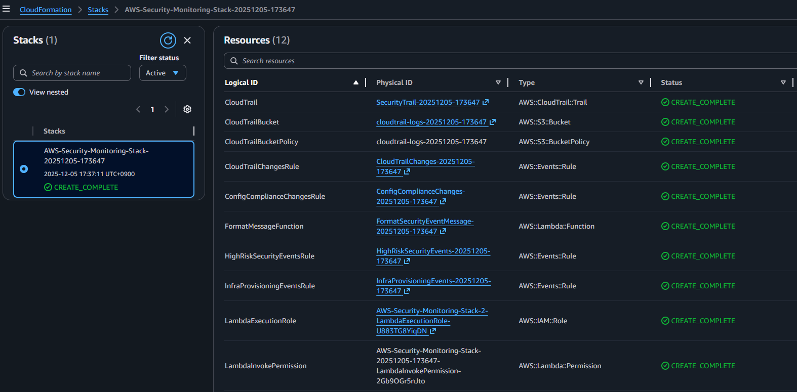 이번 글에서는 CloudFormation으로 완전 자동화된 AWS 보안 이벤트 실시간 알림 스택을 구성한 과정을 정리했다.
