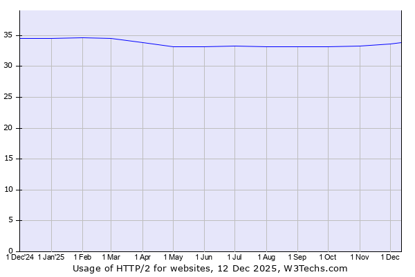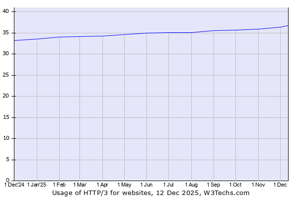 2022년 10월까지 모든 웹사이트의 26%가 HTTP/3를 사용하고 있었다. (2025년 12월 현재는 35%를 상회하고 있다.)