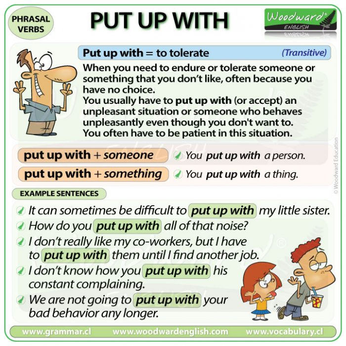 - put(두다) + up(위에) + with